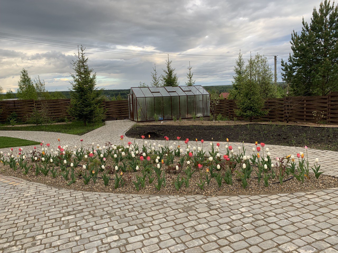 Проект 2021-2022. Выполнено: -проектирование ландшафтного дизайна участка 2000 кв.м -отвод воды с участка, ливневая и дренажные системы -мощение плиткой, экопарковка -автополив -укладка газонов и устройство посевных газонов -стрижка всех деревьев на объекте -закладка розариев -посадка крупномеров -установка двускатной теплицы на алюминиевом каркасе -огородная зона из древесно-полимерной доски -устройство автополива -клумбы и рокарии