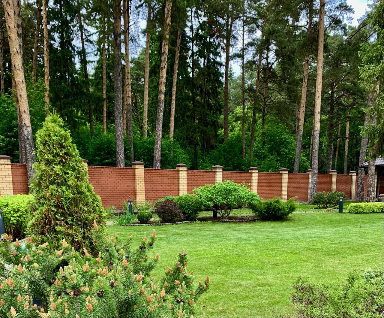 В сезоне 2022 гола на объекте, площадью более 1200 кв.м, были выполнены следующие работы. 1. Спроектирован ландшафтный дизайн участка с учетом перепада высот: генеральный план, мощение, освещение, дендрологический план, концепция ландшафтного озеленения. 2. Выполнено строительство забора на фундаменте из желтого кирпича и металлопрофиля, установлены ворота с электроприводом. 3. Запроектирован и построен каркас гаража, площадью, более 100 кв.м, объединяющий саму зону гаража и летнюю кухню. Установлена крыша из металлочерепицы, смонтирована ливневая система. 4. Выполнено мощение плиткой Листопад Гладкий Классико. 5. В парковочной зоне уложена экопарковка.