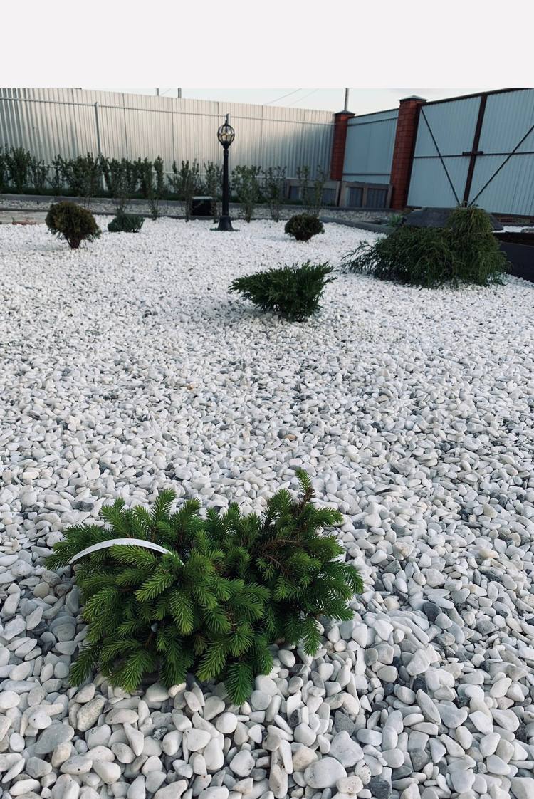 Разнообразие миниатюрных хвойних форм в галечном оформлении