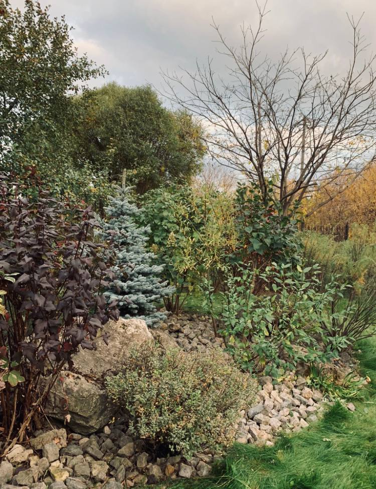 Еще одним мероприятием, за которое не очень любят браться ландшафтники, является реконструкция сада. К реконструкции относится любая переделка сада - пересадка, смена акцентов, добавление новых смысловых точек, уборка старого, посадка нового. Это всегда очень энергоемкий и трудозатратный процесс, потому что уже все посажено и уложен газон, проведены коммуникации. Одно дело- просто посадить дерево, другое дело - найти место под новое, убрать газон, снять геотекстиль, противокротовую сетку, на руках принести грунт, дерево, так, чтобы не испортить ничего рядом. Сложно. В моем случае реконструкция получилась следующим образом. Меня пригласили посмотреть сад, потому что в нем не хватало цвета. Как будто. Я приехала на экскурсию почти на полдня. Сад был очень большой, и немолодой. На встрече я поняла, почему хозяевам не хватает цвета. На самом деле - пятен было очень много, но они были не структурные. Два рокария выбивались из смысла с третьим рокарием. Аллея не была закончена, и между аллеей не продлен раппопорт. Глаз цеплялся, искал повторений точек, но не находил. Сначала я подстригла весь сад. Это заняло почти четыре дня. Заказчики сказали вау. Как так? Сразу появились акценты, линии. Параллельно я проводила ликбез их работнику, чтобы он с пониманием относился к процессам внутри сада. Дальше началась работа над проектом. Это было очень сложно. Требовалось переделать части участка так, чтобы сад был декоративен в любое время года. Мы с дизайнером нанесли на чертеж ВСЕ растения и их примерные формы. Я ходила с камерой по участку и два дня считала и записывала видео. Потом придумали идею. Идею планировки отрисовали в разные сезоны. Потом была пересадка и посадка, сантиметр влево, сантиметр вправо. Я всегда экономно отношусь к посадочному материалу, поэтому мы, в том числе, просто меняли огромные кустарники местами, чтобы они наиболее эффектно выглядели. Основным критерием было, как всегда, чтобы "не бесило мой глаз". Я перенесла один энергетический кризис, когда ты просто чувствуешь упадок сил, но финал этого стоил .