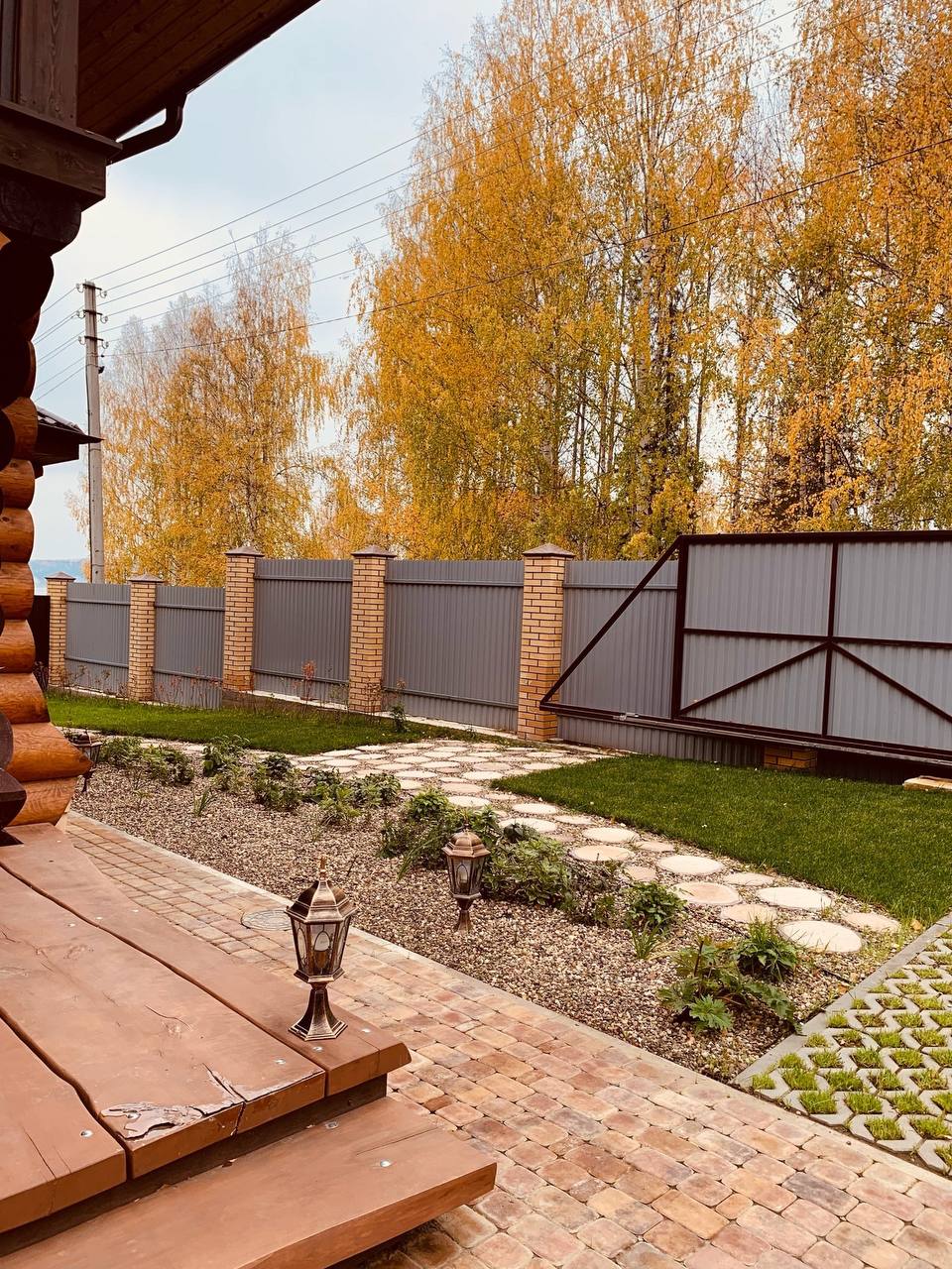 Запланирована в стиле основных строений дополнительная дорожка к качелям, зоне отдыха, и хотя она стоит возле забора, но смотрит на очень живописный цветник.